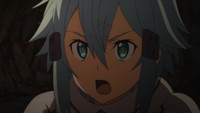 After hearing that Kirito had killed people in SAO, Sinon asks him how he was able to overcome the memories of the people he killed, but Kirito reveals that he didn't overcome them, instead accepting the weight of them, since it was all he could do to atone for his actions. Then, while thinking about how Death Gun was able to stop the heart of players by shooting them in the game, Kirito realizes that Death Gun did not shoot him with the pistol, but with the sniper instead. Based on this, Kirito deduces that Death Gun had to make preparations in real life to be able to kill the players with his pistol, and that he could've seen players putting their real-life details in the General Governor's Office since it was an open space and the terminals did not offer much privacy. Kirito then brings up the idea that Death Gun could have used his mantle to spy on other players without being noticed. After some thinking, Kirito realizes that Death Gun was actually two people: one shoots the player in-game, the other kills the player in real life by injecting them with a lethal drug. Meanwhile, Kikuoka Seijiro logs onto ALO as Chrysheight under Asuna's request and, after Yui reveals all the information on the incident that she had gathered, Chrysheight explains the situation to Asuna and the others. Asuna then requests Kazuto's whereabouts and decides to go to him in real life. Back in GGO, Kirito and Sinon decide on a course of action and are surprised to find out that they were being filmed by one of the cameras. (Source: Wikipedia)