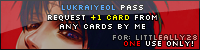 YOU WON: 1 Gift Card (Regular) and a Random Avatar Ticket Category: Regular -- Gift Card Usage -- Valid for 1 edition Citizens can request in editions as a Royalty. Royalty can request +1 Card from each prince/princess. Wow! You almost got it! Still want to try? Try a Regular ticket after a day! c: [ C L I C K Y ! ] |