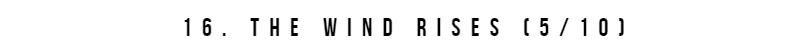 Gah. This is the first of three Ghibli films I feel bad for not liking more. I can't particularly offer much critique of this one but I still didn't really enjoy it. This is very competently made but damn, I found it so boring. I wanted to like it but I found it hard to sit through. The fault for that lies at least partly at my door. Unfortunately, I just have zero interest in planes and a distaste for war stories. So this is a really hard sell for me and sadly, I wasn't buying. Furthermore, my favourite part of this film, the romance was horribly under-played. It was hardly featured, which I thought was a real shame.