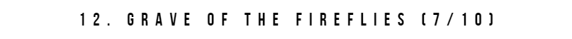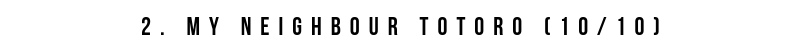 This is the perfect example of how to make a children's film that can be equally enjoyed by adults. It's child-like not childish. It's is full of wonder and perfectly encapsulates what it's like to have such an imagination. The film has some iconic imagery. But the way the film builds tension and manages to have a climax in what is a fairly simple story is exceptional. I remember how riveting I found this film and it's one of those films that holds up on multiple re-watches. It's so full of charm. This is probably my favourite artwork of any anime and it's a simple yet touching & beautiful story. There are countless little details in this anime that make this my only other ten.