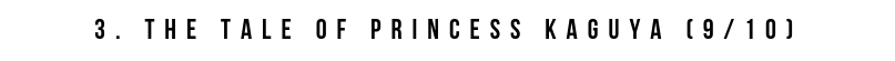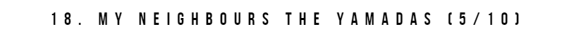 Although highly critically acclaimed, I didn't really get the hype of this one. Actually, that's not quite true - I get why some people find this introspective and poignant but frankly it felt like naval gazing to me. While you might be able to commend some of the technical aspects of this film, I'm not sure there's many people that would say they thought it was very enjoyable. The main character is a pretty weird person and while lots of oddballs are very endearing, she's a bit cringe-worthy and causes a lot of uncomfortable moments. There's so much awkward laughter that they should've probably made that the title. It does have some really beautiful animation, in particularly the orange flower picking scenes. Overall, the story and characters weren't particularly to my liking and that whole period saga should definitely be trimmed down. It's fine I guess but not as good as other Ghibli films.