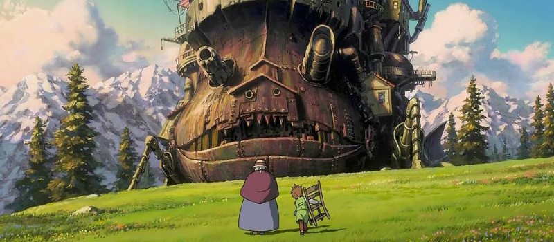 Visually, it's amazing. The steampunk aesthetic is so well-incorporated to enrich and inform the world-building. The castle design is just fantastic in every sense of the word. The animation is beautiful - there no need for me to wax lyrical about it, just look at it. Also, while the Japanese voice actors are very good, the English dub is even better. The voice acting is superb. Lauren Bacall, Emily Mortimer, Billy Crystal, Blythe Danner & Christian Bale - they all do a fantastic job at their respective characters.