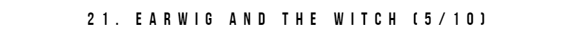 One of my favourite thing about Ghibli films is that most of them really are the definition of family films - they can be enjoyed by anyone of any age. Earwig and the Witch is very clearly for kids and that's not necessarily a bad thing but as an adult, I was pretty bored. The plot is basically missing. It's based on an unfinished novel and it feels like it. There are so many loose threads and it sets up plot lines that go nowhere. Earwig felt like the first episode for a slice of life TV series about a girl who goes to live with a witch. - not a coherent, competent movie with set-up, conflict and resolution.