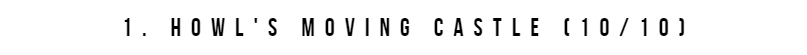 It's hard to explain why I love this film. I think it's a masterpiece. It has so much fantasy and magic. The art is breath-taking. The cast of characters are fantastic. Even the side characters have so much charm and personality. Sophie is a wonderfully written character - I love her determination after she's inflicted with the curse - she just gets on with and has real agency. It feels like an adventure. It's one of the rare films that I feel gets better and better on re-watch.