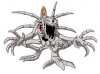 He is a cross between a fire breathing dragon and a Tyrannosaurus Rex.