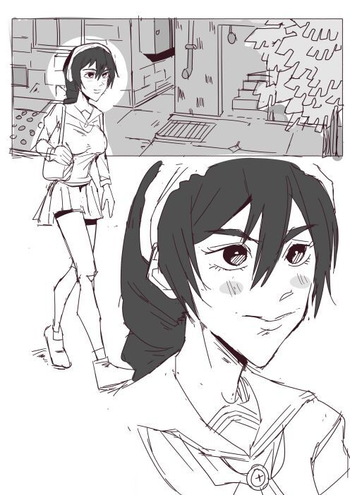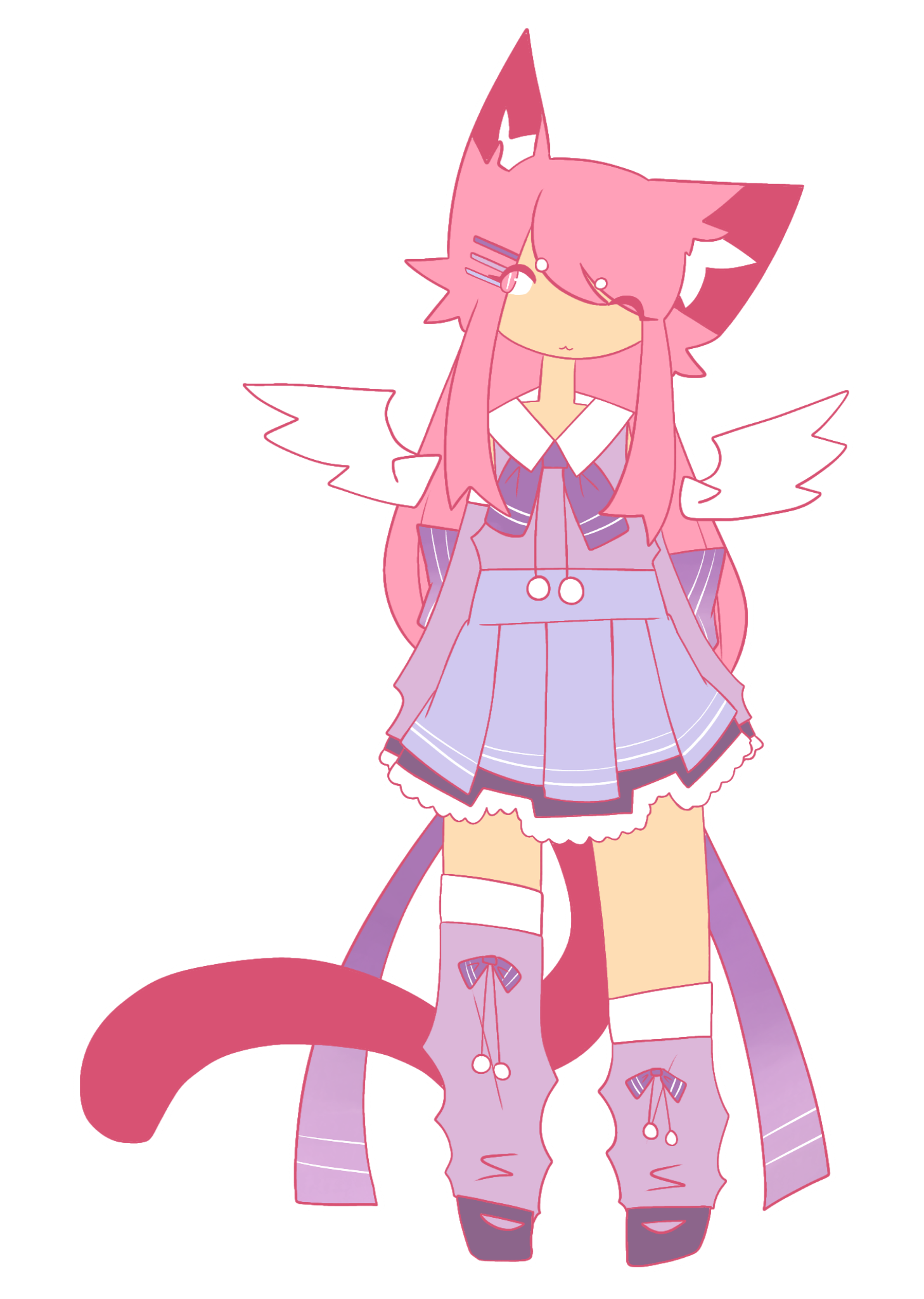 For me, it doesn't look at all like a school uniform haha. It's not an obi. It's just a giant bow, because I like bows, hahahaha. Yes, I love cat ears. So cute. I know that sketch looks a bit bad, haha, it's old.. I don't really like drawing like that anymore, that's why I say that it's not my style anymore. Of course, I also draw in a lot of different styles! I'll be working on including more cyber elements into her design, and I do like assymetric designs a lot, but I'm not very experienced in them haha. I'll work on that too.