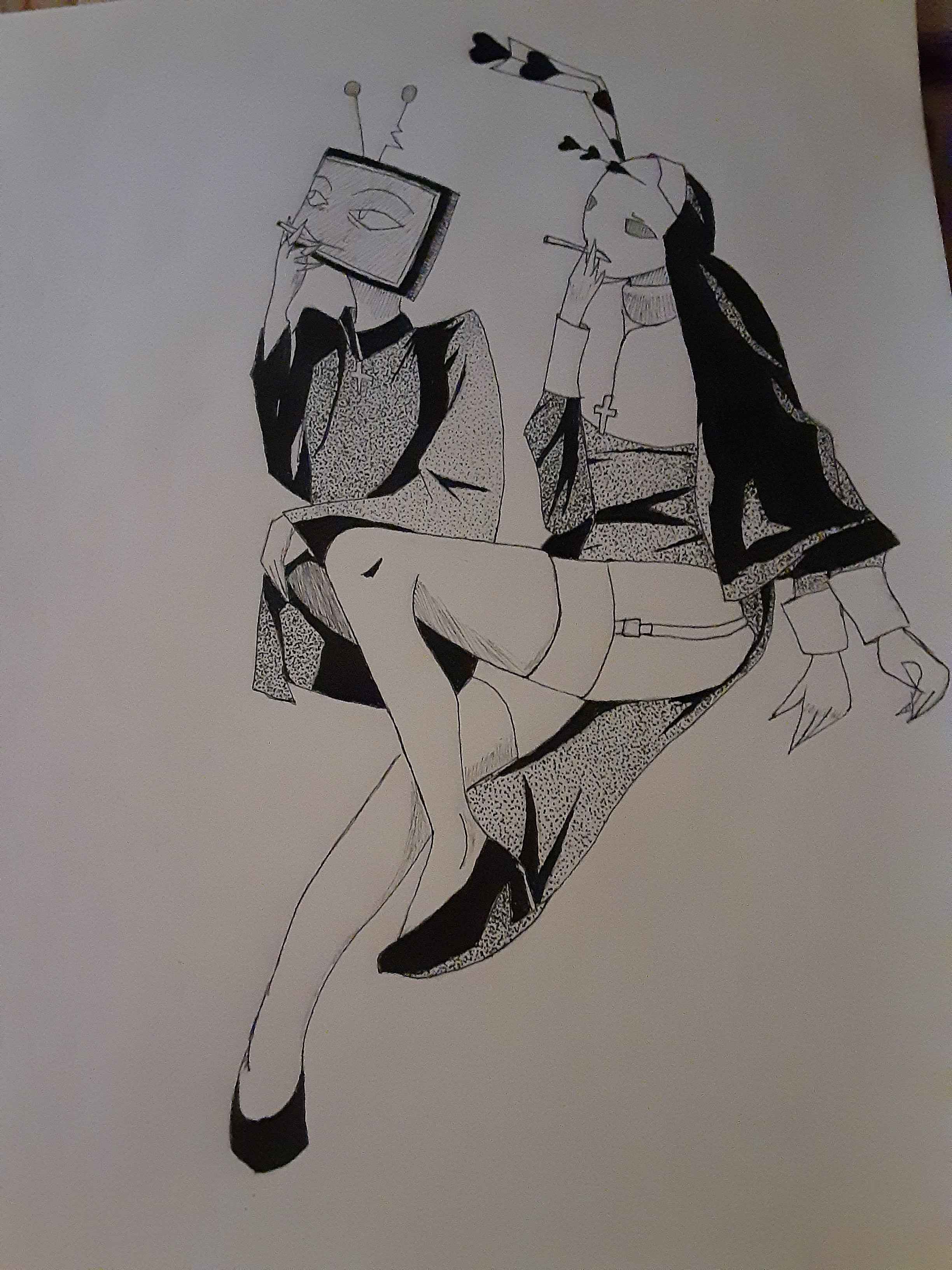 Oh, also, I didn't draw anything the whole september. It's true. But yesterday I ended up making two new drawings of another OC. Here they are.