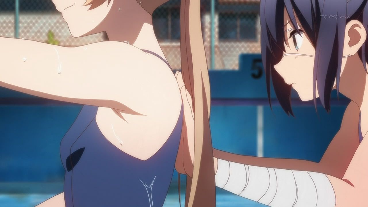 This episode was the best to date for I got loads of amazing Sanae in swimsuit with a yummy DFC exposure all the way. Rikka is not bad but certainly Sanae is far more flater and hence DFC title goes to her whom obviously I love as a character. On the other hand we got a first serious Rikka x Yuuta moment and get this, Rikka having normal honest reactions. Truly splendid elements to explore further.