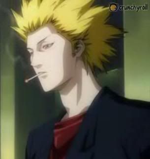 Cloud Strife (Final Fantasy VII, but I guess that is not necessary, huh?), Haine Rammsteiner (Dogs; Bullets and Carnage) and Ross (Senyuu) are practically carbon copies on the outside. Ross might be a play on Cloud, though. Cloud and Haine even have the same voice actors.