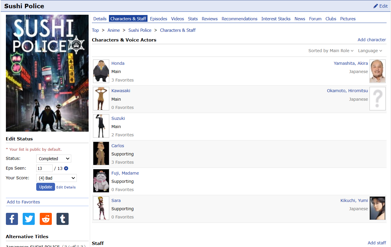 Start Date: 03 January 2022 End Date: TBD PROGRESS: 19/20 | HoF Checklist WATCHING | PLANNING | COMPLETED #06 01 ▸ Watch an anime that aired on the 6th day: Mahou Shoujo Madoka★Magica Movie 1: Hajimari no Monogatari 02 ▸ Watch a series that aired in the 6th month: 15-fun de Wakaru: Kami no Tou 03 ▸ Watch a series that aired in a year ending in 6: Danganronpa 3: The End of Kibougamine Gakuen - Mirai-hen 04 ▸ Watch a series with 6 in the main title: Naruto: Shippuuden Movie 6 - Road to Ninja 05 ▸ Watch a series with 6 in an alternative title: Boku no Hero Academia 6th Season 06 ▸ Watch a series with a main character that has 6 in their name: Series | Can use: 6, six, roku, mut(tsu) list character 07 ▸ Watch a series with only 6 characters listed: Dead Leaves 08 ▸ Watch a series ranked with 6 in it: Devilman: Crybaby Screenshot 09 ▸ Watch a series with a popularity that has 6 in it: Hataraku Maou-sama!! --Screenshot 10 ▸ Watch a series favorited 600 to 699 times: Kara no Kyoukai Movie 3: Tsuukaku Zanryuu Screenshot 11 ▸ Watch a series with total members between 60,000 and 69,999: Kimi wo Aishita Hitori no Boku e Screenshot 12 ▸ Watch a series with only 6 episodes: Mnemosyne: Mnemosyne no Musume-tachi 13 ▸ Watch a series with 26 min. per ep.: Kakegurui Twin 14 ▸ Watch a series with only 6 recommendations: Series screenshot recommended 15 ▸ Watch a series with only 6 forum discussion threads: Pokemon Movie 03: Kesshoutou no Teiou Entei Screenshot 16 ▸ Watch a series with the most number of votes in 6: Anju to Zushioumaru Screenshot 17 ▸ Watch a series with the least number of votes in 6: Series under Score Stats; screenshot recommended 18 ▸ Watch a series that was reviewed on day 6: Free! Review 19 ▸ Watch an anime tagged as Sci-Fi, Harem, Space, or Horror: Dr. Stone: Ryuusui 20 ▸ Watch an anime from Studio Deen or Doga Kobo: Hetalia World★Stars Alternate ▸ Watch an anime that aired on the 16th day: Ningyo no Mori Alternate ▸ Watch a series with a rating that has 6 in it: Fate/stay night TV Reproduction Screenshot |