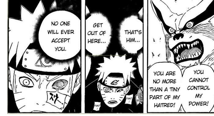 Oh man... Kishi, what have you done. It was probably one of the shitest chapter I've read since 'Aizzzzzzzzen just as planned' moment from bleach. I mean, fighting super, strong foxy and suddenly 'OMG EVERYONE HATS ME!!!' depression recall, and now YAH MOM has appeared. Is that even supposed to be a cliff hanger? Seriously... even art work was another train wrack in this chapter. That fox and YA MOM's faec was just... eh