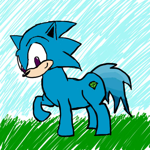 I drew a Sonic version of a My Little Pony because I was bored and wanted to create an abomination like Sonichu. Here is the link to it
