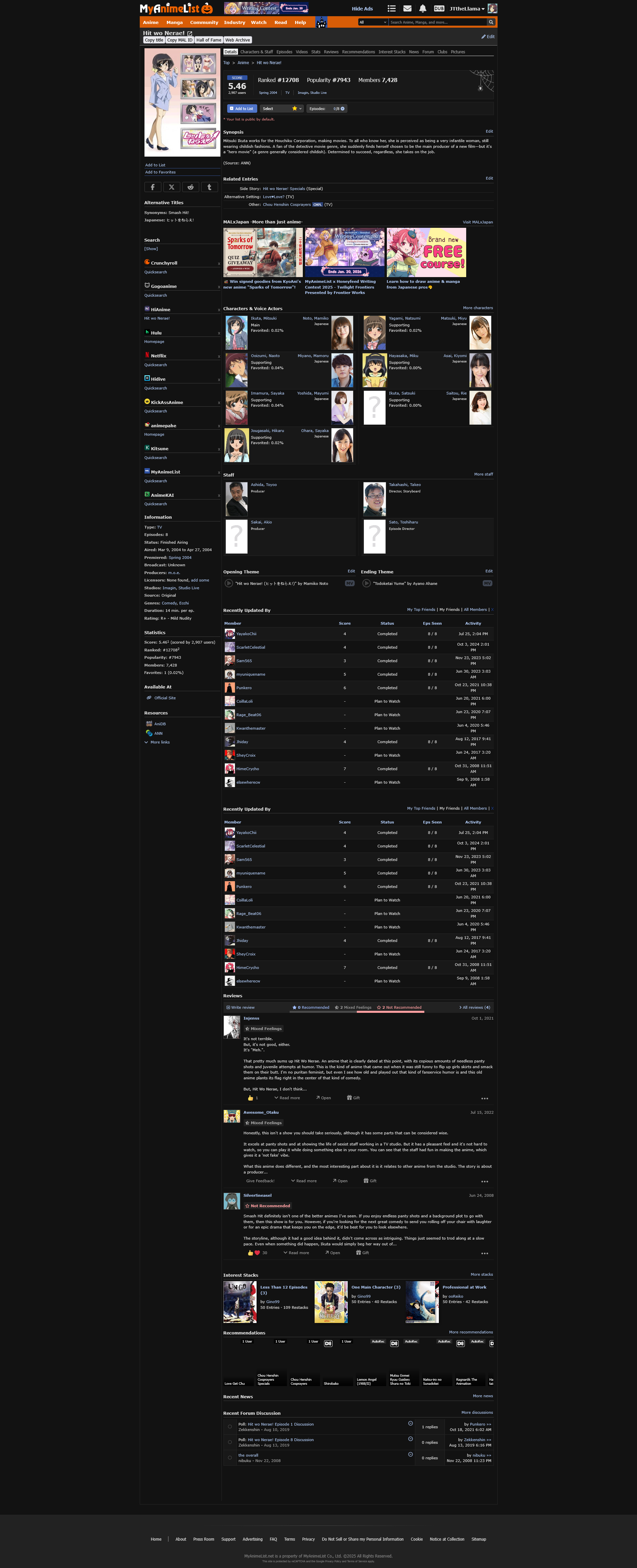 Initial Post Number: #116 🎠 Challenge Start Date: January 28, 2025 🃏 Challenge Finish Date: December 11, 2025 🍭 Link to your completed anime list: Completed Anime List 🍦 Link to your MAL Statistics: MAL Statistics 🍬 Link to your Anime+: GRAPH+ 🎪 Completed Anime (on sign-up date): 824 🎡 Time Zone: UTC-5 🤡 Anime in Forum Avatar/Signature: 5-toubun no Hanayome ∬, Make Heroine ga Oosugiru! 🤹 Legend: Watching - Completed - Inactive/Plan to Watch IMPORTANT To-Do List (remove list before turning in!)