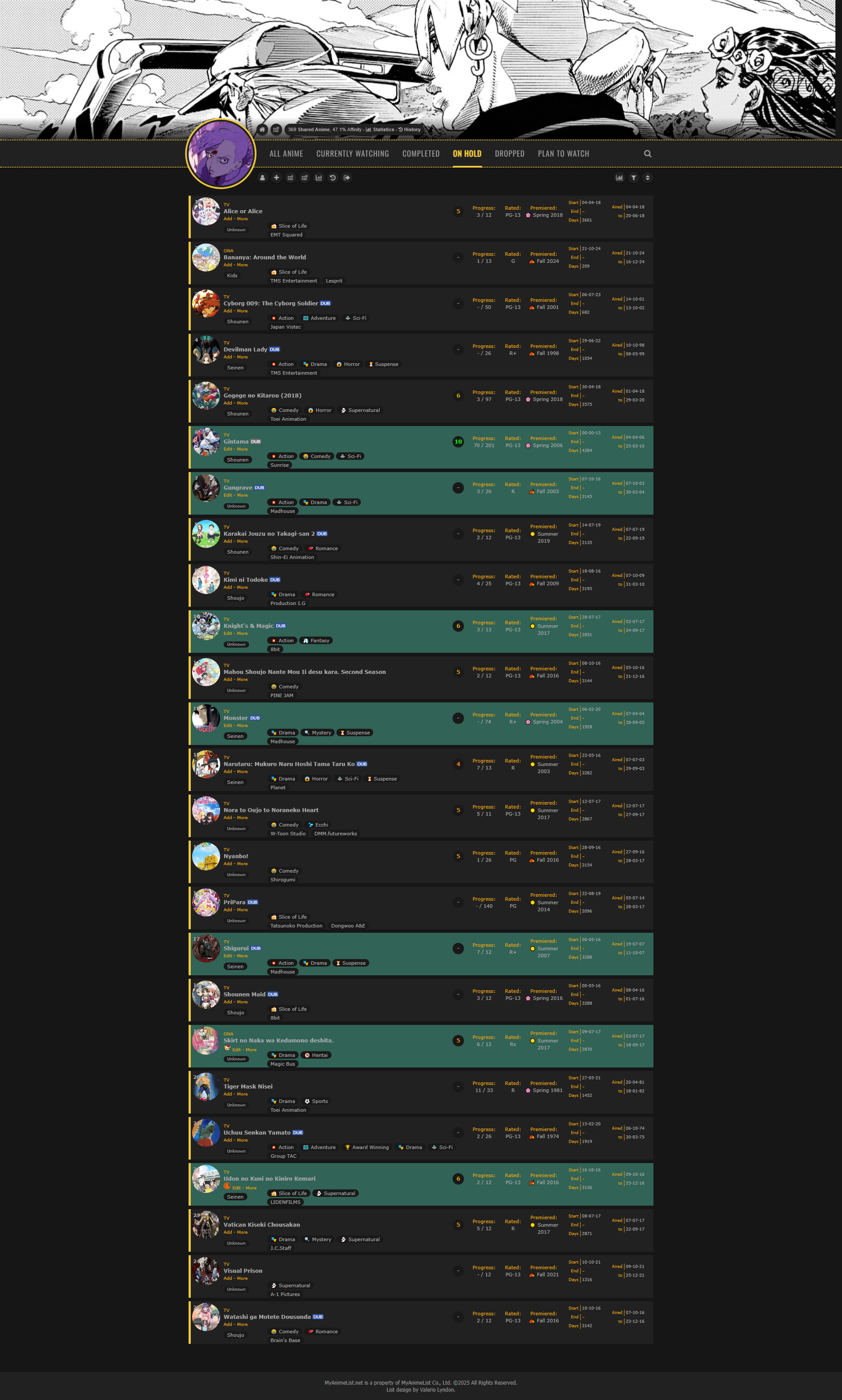 Initial Post Number: #121◊ ⏳ Challenge Start Date: January 02, 2025 ⌛ Challenge Finish Date: MONTH DAY, YEAR (e.g. December 10, 2025 - the date you finished watching your last anime for the challenge) 📜 Link to your completed anime list: https://myanimelist.net/animelist/zMatthew?status=2 🍦 Link to your MAL Statistics: https://myanimelist.net/profile/zMatthew/statistics 📜 Link to your Anime+: https://anime.plus/zMatthew 🔍 Completed Anime (on sign-up date): 277 🌐 Time Zone: UTC/GMT_ZONE 🔎 Anime in Forum Avatar/Signature: Umineko no Naku Koro ni ✏️ Legend: Watching - Completed - Inactive/Plan to Watch IMPORTANT To-Do List (remove list before turning in!)
