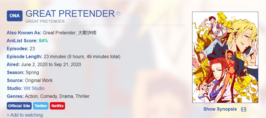 Initial Post Number: #1728β© π· Challenge Start Date: April 14, 2020 πΆ Challenge Finish Date: π£ Link to your completed anime list: https://myanimelist.net/animelist/rogermas π£ Link to your Anime+: https://anime.plus/rogermas?referral=search π© Completed Anime (at sign-up): 45 π© Time Zone: GMT+2 πΊ Difficulty: Bronze Medalist[/b] Bronze Medalist π» Restriction: N/A π₯ Anime in Forum Set: Yagami Light Profile picutre π₯ Legend: Watching - Completed - Inactive/Plan to Watch π‘οΈ Challenge list: