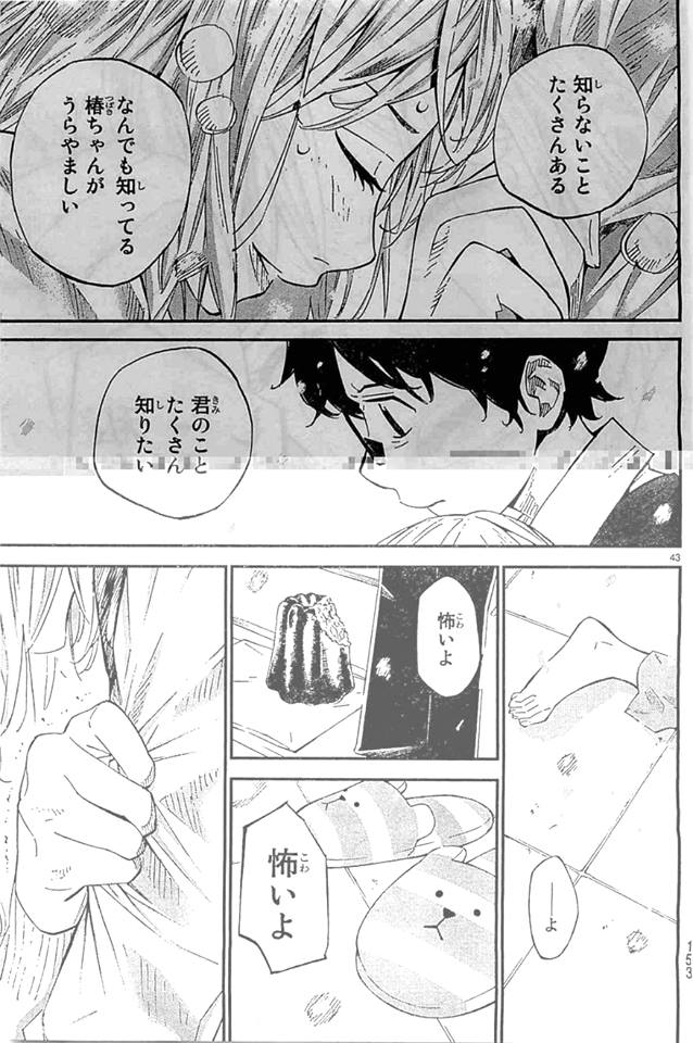 serphirs said: When they said that? The final chapters are not officially translated, aren't they? I thought that surgery was with the mere purpose of saving her life. More than prolong her lifetime. We don't even know what disease she had. Most of the revealed information has not yet been translated, but chapter 37 already gives you an early indication: We do know what disease she has also, it's a degenerative one as stated in a previous post. If we look back at chapter 41, there was a very powerful and tearjerking scene where Kaori asks Kousei a lot of questions such as his likes and hobbies because she realizes how little she really knows about him. Then she goes and says she regrets not getting to know him better, and it is too late now because her time in life is limited. There are so many things I don't know about you. I'm envious of everything that Tsubaki-chan knows about you. I want to know so much about you... I'm scared... I'm scared! Don't leave me alone! (If I post any more pictures, I'm afraid I would break MAL copyright guidelines, but you get my point.) If you're reading it in English, just patiently wait for translations to come and see how everything unfolds up to this point. |