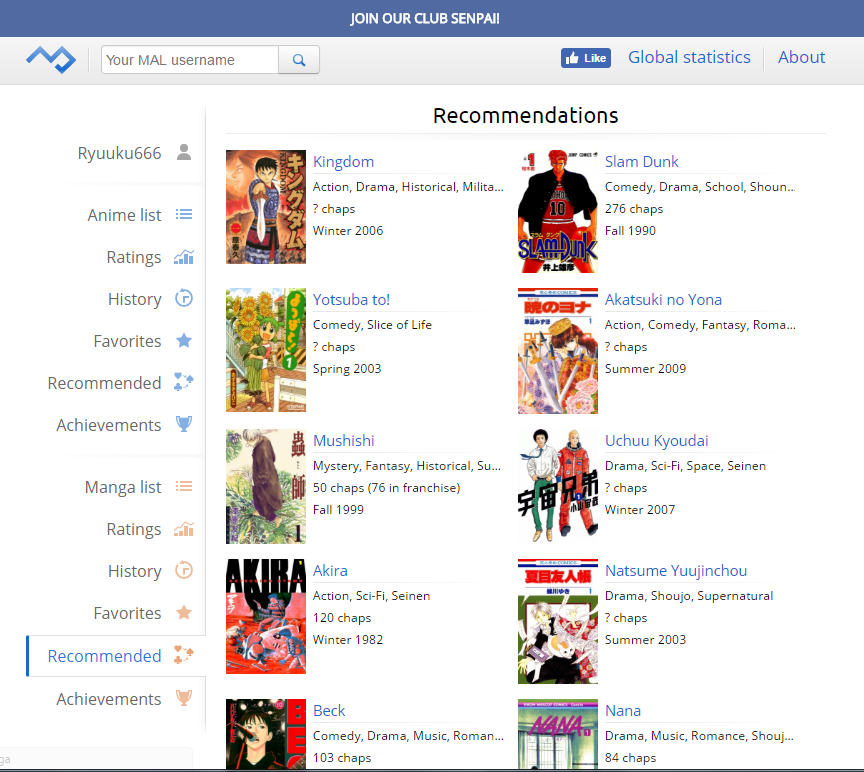 Initial Post Number: <####> ๐ฎ Challenge Start Date: 11 January, 2017 ๐ง Challenge Finish Date: December 24, 2017 ๐ Link to your list: http://myanimelist.net/mangalist/NilolaX3 ๐ก Completed Manga (at sign-up): 4 ๐ก Bingo Card #: 010 ๐ก Difficulty: Novice ๐ก Pattern: Snowflake ๐ Legend: Reading - Completed - Inactive/Plan to Read ๐ Challenge list: 66 [Started: ???] [Finished: 2017] Read a manga suggested by Manga+ or by MAL.??? 69 [Started: ???] [Finished: 2017] Read a manga that is related to something you previously read. ] 02 [Started: ???] [Finished: 2017] Read a manga that is a collection of short stories.??? 35 [Started: ???] [Finished: 2017][Read a manga ranked between the top 1001 and top 10k. ??? 56 [Started: ???] [Finished: 2017]Read a Sports, Martial Arts, Cars or Games manga.??? 03 [Started: ???] [Finished: 2017] Read a web or 4-koma manga.??? 52 [Started: ???] [Finished: 2017]Read a Romance, Slice of Life or Comedy manga.??? 40 [Started: ???] [Finished: 2017]Read a manga with an adult MC. ??? 11 [Started: ???] [Finished: 2017]Read a manga by an author and artist duo.??? 37 [Started: ???] [Finished: 2017] Choose a highly rated manga from another challenger who posted on the same page you signed up on.??? 25 [Started: ???] [Finished: 2017]Read a manga that started publishing last year.??? 14 [Started: ???] [Finished: 2017]Read a manga serialized in a shounen magazine.??? 57 [Started: ???] [Finished: 2017]Read a Dementia, Horror, Demons or Vampire manga.??? 48 [Started: ???] [Finished: 2017]Read a manga about food, music or art.??? 08 [Started: ???] [Finished: 2017]Read a manga by one of your favorite authors/artists.??? 16 [Started: ???] [Finished: 2017] Read a manga serialized in a seinen magazine.??? 59 [Started: ???] [Finished: 2017]Read a Historical, Military or Police manga.??? 01 [Started: ???] [Finished: 2017]Read a one-shot.??? 60 [Started: ???] [Finished: 2017]Read a manga recommended to you by another Manga Reading Challenge participant in the discussion thread.??? 68 [Started: ???] [Finished: 2017] Choose a random trope from TVTropes and read a manga listed under the trope. ??? |
