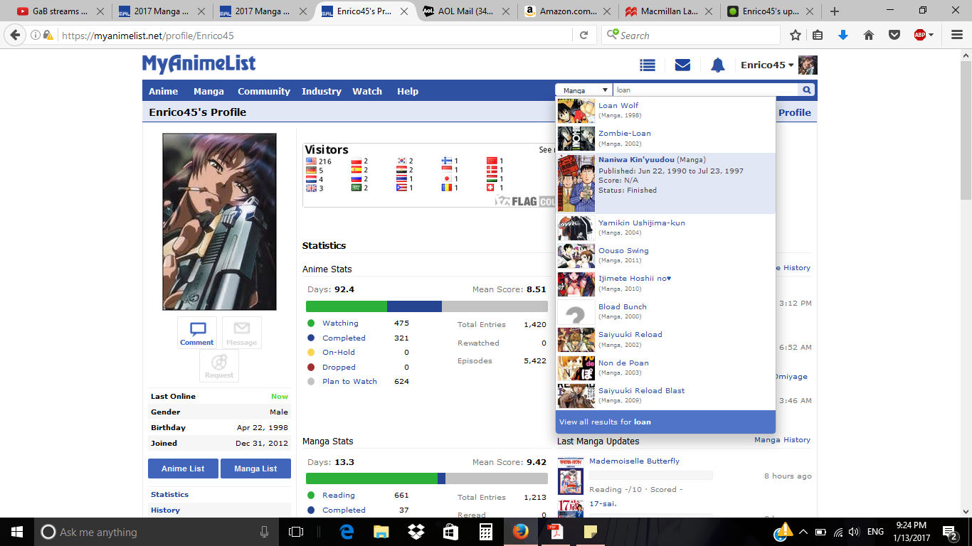 Initial Post Number: 276 ๐ฎ Challenge Start Date: January 10, 2017 ๐ง Challenge Finish Date: ๐ Link to your list: http://myanimelist.net/mangalist/ilai456 ๐ก Completed Manga (at sign-up): 1 ๐ก Bingo Card : #72 ๐ก Difficulty: Rookie ๐ก Pattern: Diamond ๐ Legend: Reading - Completed - Inactive/Plan to Read ๐ Challenge list: