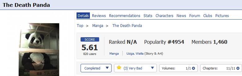 Initial Post Number: #264 ๐ฎ Challenge Start Date: 10/01/17 ๐ง Challenge Finish Date: TBA ๐ Link to your list: http://myanimelist.net/mangalist/Scooty-Bby ๐ก Completed Manga (at sign-up): Only 61 but its 67.3 days worth. ๐ก Bingo Card #: 054 ๐ก Difficulty: Pro ๐ก Pattern: Top Hat ๐กLegend- โCompleted - Started/Reading - Not Started Challenge ๐ Challenge list: 1[Started: 10/1/17] [Finished: TBA] 53- Read a Drama, Action or Adventure manga : Kimi No Iru Machi(Drama) 2[Started: 21/2/17] [Finished: TBA] 36- Read a manga with less than 2000 completed members: Red Blood Red Legacy(625) 3[Started: <date>] [Finished: <date>] 46- Read a manga that takes place outside of Japan: [color=<legend_color>]<manga_title>[/color] 4[Started: <date>] [Finished: <date>] 30- Read a manga adapted from a video game, original anime or light novel: [color=<legend_color>]<manga_title>[/color] 5[Started: 09/02/17] [Finished: <date>] 35- Read a manga ranked between the top 1001 and top 10k: Love Theory(2386) 6[Started: 05/01/17] [Finished: TBA 10- Read a manga by a male author/artist: Love Lucky(Aki Katsu) 7[Started: <date>] [Finished: <date>] 49- Read a manga centered around folklore or mythology: [color=<legend_color>]<manga_title>[/color] 8[Started: <date>] [Finished: <date>] 05- Read an award-winning manga: [color=<legend_color>]<manga_title>[/color] 9[Started: <date>] [Finished: <date>] 18- Read a manga from a magazine with less than 250 titles listed in the database - Find how many titles each magazine has here: [color=<legend_color>]<manga_title>[/color] 10[Started: <date>] [Finished: <date>] 43- Read a manga that has a main character that is a professional in his field: [color=<legend_color>]<manga_title>[/color] 11[Started: <date>] [Finished: <date>] 51- Read a manga based on real event or person: [color=<legend_color>]<manga_title>[/color] 12[Started: 31/01/17] [Finished: <date>] 52- Read a Romance, Slice of Life or Comedy manga: Good Ending(Romance) 13[Started: 03/03/17] [Finished: <date>] 29- Read a manga that has not been adapted in any way: RE:Birth The Lunatic Taker 14[Started: <date>] [Finished: <date>] 17- Read a manga published in the same magazine in which your favorite one was serialized: [color=<legend_color>]<manga_title>[/color] 15[Started: <date>] [Finished: <date>] 02- Read a manga that is a collection of short stories: [color=<legend_color>]<manga_title>[/color] 16[Started: <date>] [Finished: <date>] 67- Read a manga that starts with the same second letter of your username: [color=<legend_color>]<manga_title>[/color] 17[Started: <date>] [Finished: <date>] 23- Read a manga published between the 2000s and the 2010s: [color=<legend_color>]<manga_title>[/color] 18[Started: 27/03/17 ] [Finished: <date>] 57- Read a Dementia, Horror, Demons or Vampire manga: Onihime Vs(Demons) 19[Started: 02/01/17] [Finished: 02/01/17] 27- โRead a manga one-shot that became a prototype for a longer series: GE: Good Ending 20[Started: <date>] [Finished: <date>] 48- Read a manga about food, music or art: [color=<legend_color>]<manga_title>[/color] 21[Started: <date>] [Finished: <date>] 38- Read a manga with more users listed in Plan to Read than Completed: [color=<legend_color>]<manga_title>[/color] 22[Started: <date>] [Finished: <date>] 25- Read a manga that started publishing last year: [color=<legend_color>]<manga_title>[/color] 23[Started: 19/02/17] [Finished: <date>] 24- Read a manga that started publishing after 2010: My Wife Is Wagatsuma San(2011-2014) 24[Started: <date>] [Finished: <date>] 33- Read a manga with a score of or above 8.0 in MyAnimeList: [color=<legend_color>]<manga_title>[/color] 25[Started: <date>] [Finished: <date>] 44- Read a manga that deals with something related to Japanese culture: [color=<legend_color>]<manga_title>[/color] 26[Started: <date>] [Finished: <date>] 09- Read a manga by a female author/artist: [color=<legend_color>]<manga_title>[/color] 27[Started: <date>] [Finished: <date>] 60- Read a manga recommended to you by another Manga Reading Challenge participant in the discussion thread: [color=<legend_color>]<manga_title>[/color] 28[Started: <date>] [Finished: <date>] 69- Read a manga that is related to something you previously read: [color=<legend_color>]<manga_title>[/color] 29[Started: <date>] [Finished: <date>] 22- Read a manga published between the 1990s and the 2000s: [color=<legend_color>]<manga_title>[/color] 30[Started: <date>] [Finished: <date>] 19- Read a manga that started serialization the year you joined MAL: [color=<legend_color>]<manga_title>[/color] 31[Started: <date>] [Finished: <date>] 01- Read a one-shot: [color=<legend_color>]<manga_title>[/color] 32[Started: 25/01/17] [Finished: TBA] 07- Read a manga by an author/artist you haven't read before: Gokukoku No Brynhildr(Lynn Okamoto) 33[Started: <date>] [Finished: <date>] 34- Read a manga ranked in the top 1000s: [color=<legend_color>]<manga_title>[/color] 34[Started: <date>] [Finished: <date>] 26- Read a manga based on a one-shot that got serialized: [color=<legend_color>]<manga_title>[/color] 35[Started: <date>] [Finished: <date>] 65- Choose a manga from the predictive search using a generated random word - Use this site to generate a word. Save a screenshot proving the manga you read appears there: [color=<legend_color>]<manga_title>[/color] 36[Started: <date>] [Finished: <date>] 37- Choose a highly rated manga from another challenger who posted on the same page you signed up on: [color=<legend_color>]<manga_title>[/color] 37[Started: <date>] [Finished: <date>] 42- Read a manga with a non-human main character: [color=<legend_color>]<manga_title>[/color] 38[Started: <date>] [Finished: <date>] 62- Read an active staff member's favorite manga: [color=<legend_color>]<manga_title>[/color] 39[Started: <date>] [Finished: <date>] FREE- <TO BE DECIDED ON>: [color=<legend_color>]<manga_title>[/color] |