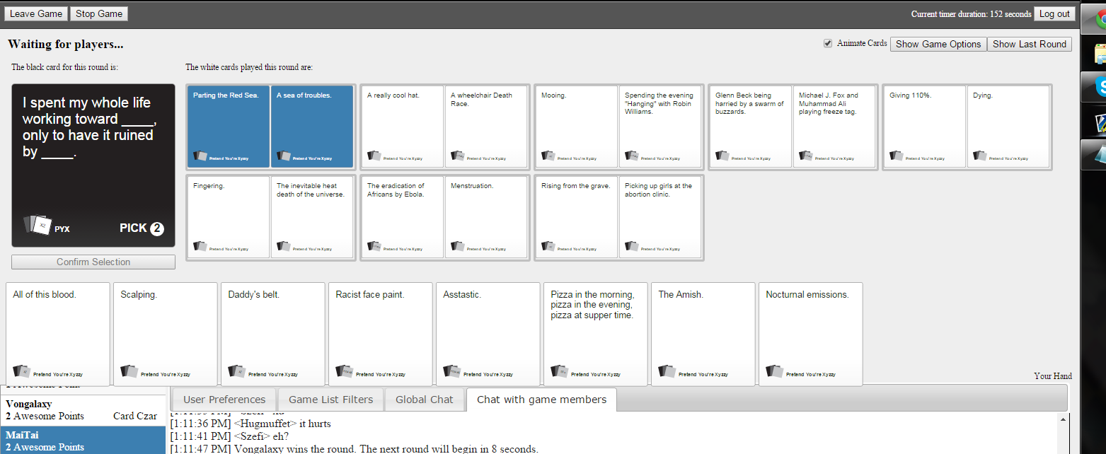 Oh, confused you with... Mishukax? Whoever HugMuffet is in Cards. I will just change it to Mishuka and wait for him to yell at me about not being in the game either, and thus the train will continue. *cough*Should have taken the points*cough*