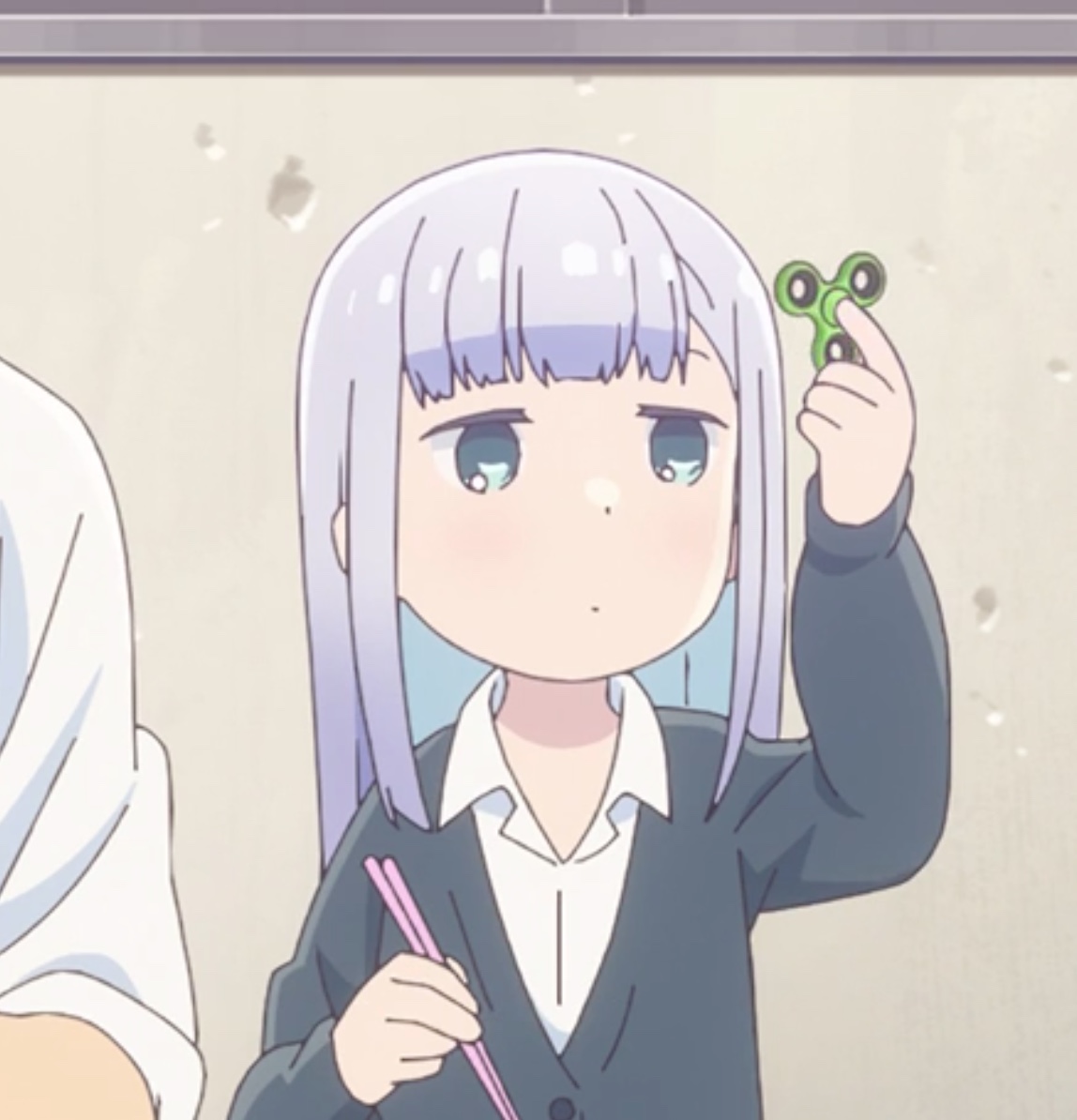 The infamous fidget spinners make its arrival and Aharen got super addicted to it. Because of her mad skills, she was into a "ruler" by some local kids at a park, where one of kid's childhood friends, Futaba, wasn't happy about it. Her threats to pull her emergency chord on her backpack and outright calling the police on Raidou for even daring to defend Aharen was funny, but I laughed harder when he got thrashed into an othello battle against her.