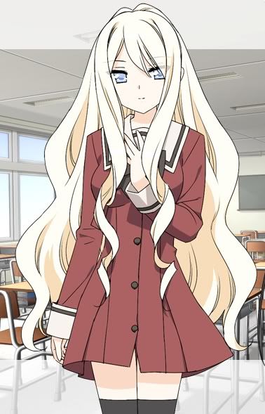 | name: Erisu age:17 bio: she' very intelligent. Come from a rich and high society family, she has to care the apparence. she' s never with her parents because their work. she's a happy girl, it's the president of student council. she's half american and half japanese, she rarely got serious. she's always playing around. she like to be the center of attention.Hates when someone ignores her, hates the boring chat in the student council pic: ![]() sorry for my bad imagination T_T |