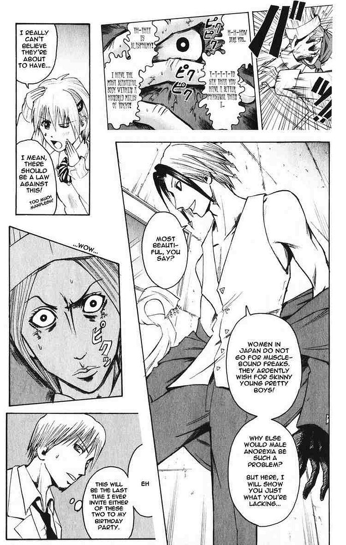 Awesome, this thread is back on track. Takai said: ![]() I felt it belongs in this thread >.> <.< From what manga is that hilarious panel from? Archaeon said: As for female leads, can you think of any other good ones aside from Mamiya? Heh, not really. Then again, I can count on two hands the number of good female characters in the 90s and 2000s. ladyxzeus said: Nowadays there are many good people that still like some good old heart shaped muscular villain. Quit making fun of my fandom of Dio Brando! The guy is simultaneously a hilarious and a terrifying villain! santetjan said: Post Excellent post. I was really getting tired of posts that didn't even attempt to answer the question of why, or pointed out irrelevant, contradictory arguments, such as the change in shoujo conventions (why would does this affect shounen, again?), or how the muscular build was supposed to "appeal to Westerners"...even though anime today is MUCH more heavily marketed towards the US, and has a larger audience there than it did 20 years ago. It's not strictly connected the focus, but I should also point out that while on here, most people prefer the new aesthetic, go to a place with more 20-somethings, like SRK (fighting game website, forum about 8 times as big as this one), and it's the exact opposite there; everyone is tired of the pretty boy look, and wants the tough, muscled warrior. |