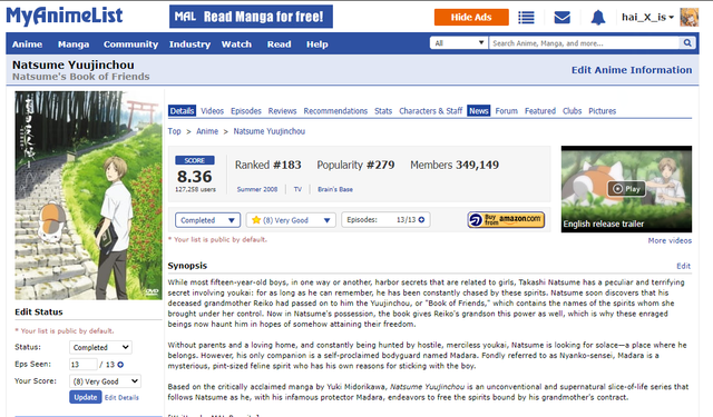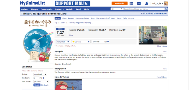 Initial Post Number: #656✩ 🔷 Challenge Start Date: Jan 1 🔶 Challenge Finish Date: Aug 26 📣 Link to your completed anime list: https://myanimelist.net/animelist/Myelin_sr?status=2 📣 Link to your Anime+: http://graph.anime.plus/Myelin_sr/profile 🚩 Completed Anime (at sign-up): 255 (when you post) 🚩 Time Zone: EST 🔺 Difficulty: Diamond Medalist 🔻 Restriction: Marathon 🥇 Anime in Forum Set: Angel Beats, The Melancholy of Haruhi Suzumiya 🥇 Legend: Watching - Completed - Inactive/Plan to Watch 🛡️ Challenge list: