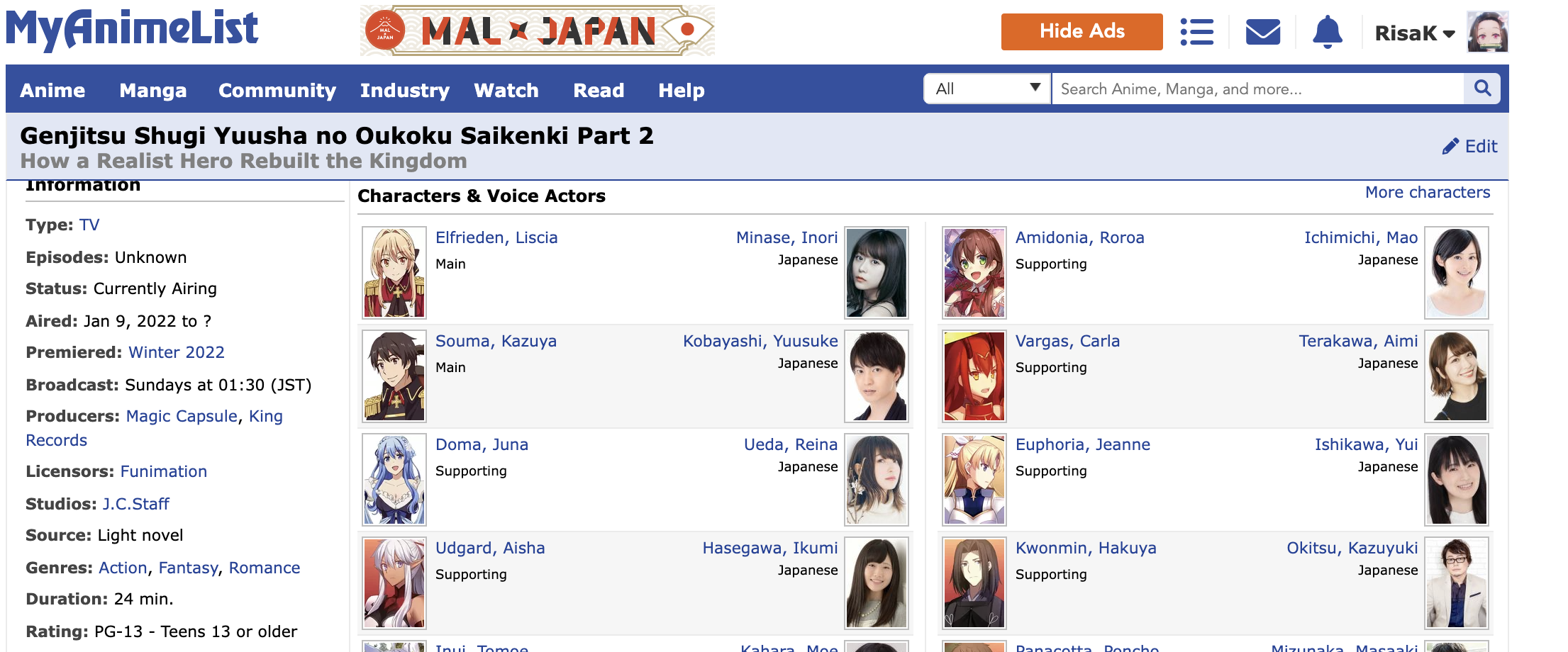 Initial Post Number: #667 โ ๐๏ธ Challenge Start Date: January 01, 2022 ๐ฐ Challenge Finish Date: TBC ๐ Link to your completed anime list: RisaK ๐ Link to your Anime+: RisaK ๐บ๏ธ Completed Anime (on sign-up date): 957 ๐ Time Zone: GMT ๐ฒ Difficulty Level: 5 ๐ฒ Full-Challenge Restriction: N/A ๐ง Anime in Forum Avatar/Signature: Durarara ๐ฎ Legend: Watching - Completed - Inactive/Plan to Watch โ๏ธ Challenge list: โ๏ธ DATE FORMAT: MMM DD (example: Jan 01)