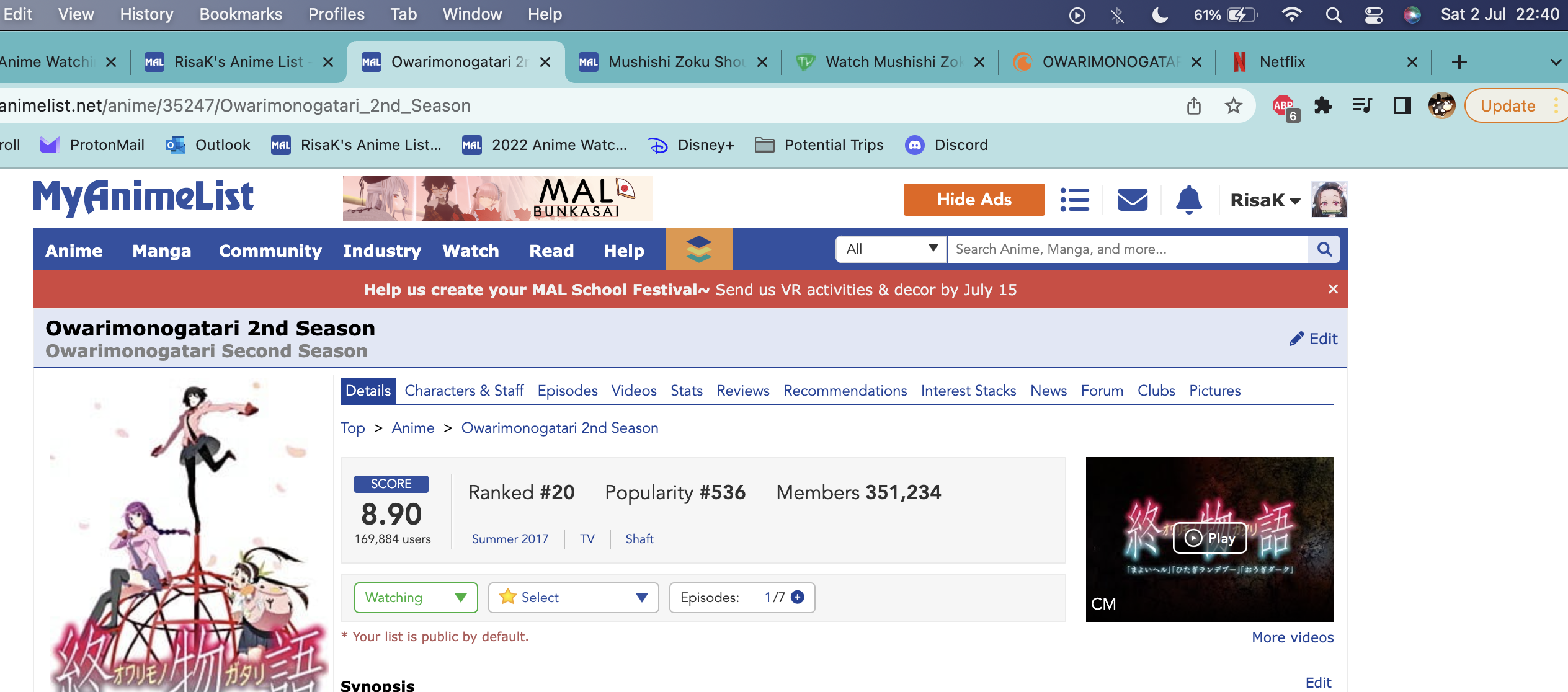 Initial Post Number: #662โ โผ๏ธ Challenge Start Date: January 02, 2022 โป๏ธ Challenge Finish Date: November 28, 2022 โผ๏ธ Link to your completed anime list: My anime list โป๏ธ Link to your Anime+: My anime graph โผ๏ธ Completed Anime (on sign-up date): 68 โป๏ธ Completed Anime (on turn-up date): 162 โผ๏ธ Time Zone: GMT +01:00 โป๏ธ Difficulty Level: 5 โผ๏ธ Full-Challenge Restriction: N/A โป๏ธ Anime in Forum Avatar/Signature: Monogatari Series || JoJo's Bizarre Adventure || Eyeshield 21 โผ๏ธ Progress: Items (75/75) || Quests (5/5) Watching | Completed | Inactive/Plan to Watch โ๏ธ Challenge list: