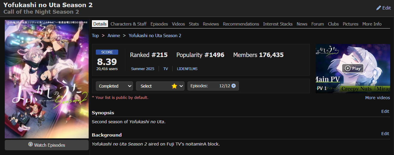 X Watch a second Romance TV Series: X Watch a Romance Movie: X Watch a second Romance Movie: X Watch a Romance Special or TV Special: X Watch a second Romance Special or TV Special: X Watch a Romance OVA: X Watch a second Romance OVA: X Watch a Romance ONA: X Watch a stand-alone Romance anime: Does not have any series listed under "Related Anime", "Adaptation" are okay. X Watch a Romance prequel/sequel: X Watch an anime related to another Romance series: Can be a Side Story, Alternative Version/Setting, Summary, etc.; Excludes Sequels/Prequels. For the following Studios/Producer related items, the company must appear listed on its MAL page. Starting Date: 2023-06-04 Ending Date: 2025-11-27 Turn-in Post: v.4 #2554
