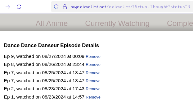 Initial Post Number: #810 ◊ ⏳ Challenge Start Date: July 17, 2025 ⌛ Challenge Finish Date: December 7, 2025 📜 Link to your completed anime list: https://myanimelist.net/animelist/anitanobasket?status=2 🍦 Link to your MAL Statistics: https://myanimelist.net/profile/anitanobasket/statistics 📜 Link to your Anime+: https://anime.plus/anitanobasket 🔍 Completed Anime (on sign-up date): 129 🌐 Time Zone: America EST 🔎 Anime in Forum Avatar/Signature: N/A ✏️ Legend: Watching - Completed - Inactive/Plan to Watch 💬 Challenge List: