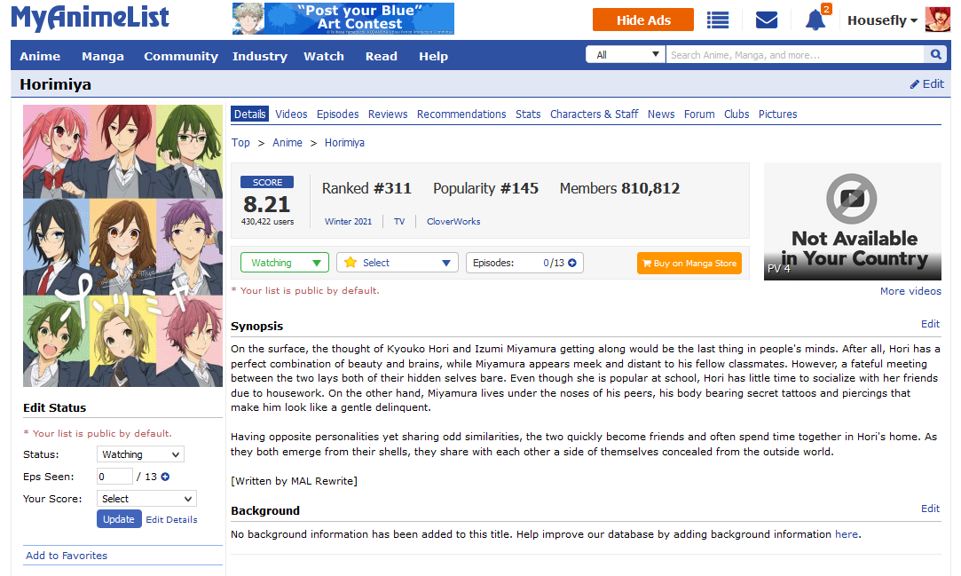 Initial Post Number: #122✩ 🔷 Challenge Start Date: January 04, 2021 🔶 Challenge Finish Date: November 25, 2021 📣 Link to your completed anime list: https://myanimelist.net/animelist/Housefly?status=2 📣 Link to your Anime+: http://graph.anime.plus/Housefly/profile ⏰ Completed Anime (at sign-up): 594 ⏰ Time Zone: GMT+1 🚩 Card Number: #08 🚩 Card Level: Bingo Legend 🚩 Restriction: Endurance 📚 Anime in Forum Set: Uchouten Kazoku 📚 Legend: Watching - Completed - Inactive/Plan to Watch ⚔️ Challenge list: