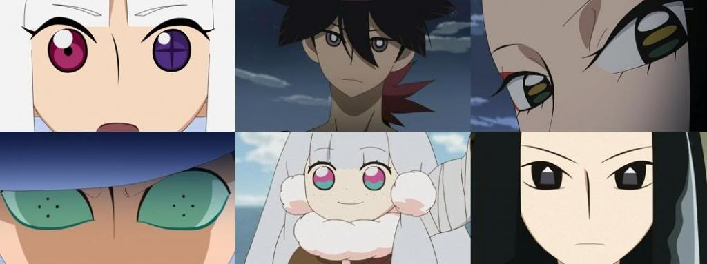 vigorousjammer said: Katanagatari is completely unrelated to Bakemonogatari and such, its just written by the same guy and he loves to make puns out of his titles.The character design in the Monogatari series looks like it takes that "moe" character design and just builds on top of it... The show gets a bunch of praise, so I might check it out eventually... but I don't really have any... desire to. It's more along the lines of... I'd reluctantly check it out as a curiosity. There is one, maybe two characters in Katanagatari that are 'moe' but everyone else has wildly different designs. Here is a sample of the actual characters and not just the eyes: |