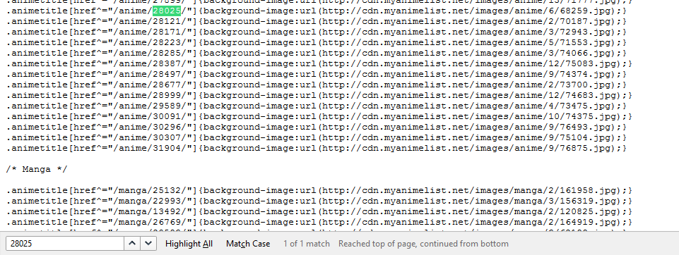 DRedDogPE said: Working now, thanks!Doomcat55 said: DRedDogPE said: Doomcat55 said: Using the "all" operation on the "advanced code" import makes it ignore the coded style and default to #more CSS. btw this generator is great, kudos for making and sharing it! Much appreciated On it now Edit: You can now use ?code= with the all Doesn't seem to be updating, though - I added Tsukimonogatari (28025) to my list today and it hasn't generated a cover. Change your import code to this .animetitle%5Bhref%5E%3D%22%2F%5BTYPE%5D%2F%5BID%5D%2F%22%5D%7Bbackground-image%3Aurl%28%5BURL%5D%29%3B%7D You didnt add a / at the end of the numbers TO |