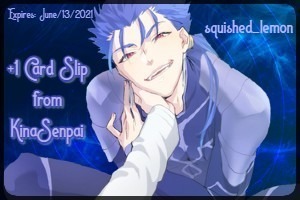 KinaSenpai: 1,2,3,5,7,8 +1/+2 Cardslip