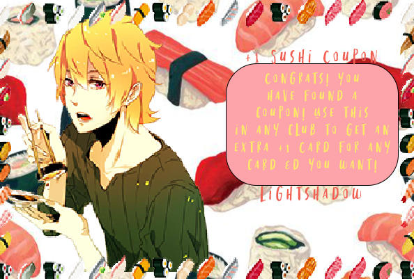 | Name: LightShadow137 Shortened Name: LightShadow Position: Member Deliver to: Private Message - - - - - - - - - - - CARDS Malefilmica: 1, 2 + 3 (I play genshin) + 6 (Ganyu?, At least I like her) titanweeb: 3, 6 + Bonus A lazy888: 6, 8 squished_lemon 4, 6, 12, 14 Harukaisthebae Yes! FeezyWheezy: 4, 5 Zuclyn: 2, 4, 5 Candles: 1, 2 JowaPlays: 1 HelProcks: 1 Hanakoxbby all! - - - - - - - - - - - Comments: So many Cards! Thanks everyone for cards! |