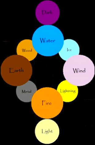| I've been thinking about an elemental system. Fire>Wind Water>Fire Earth>Water Wind>Earth That is the order by strengths and weaknesses Here is by direction East = Wind South = Fire West = Earth North = Water These will help with Elemental fusion like: Southeast = Lightning Southwest = Metal Northwest = Plants Northeast = Ice If someone were to draw a picture of this it would make a lot of sense. But the elemental strengths and weaknesses added by these newer elements would get complicated. Fire can beat metal, plants, and ice. Water is beaten by lightning, plants, and ice. Earth can beat lightning, but loses to plants. Wind is beaten by ice. Lightning can beat water, but loses to metal and earth. Metal can beat lightning and ice, but loses to fire. Plants can beat water, but loses to fire, metal and ice. Ice can beat water, wind and plants, but loses to fire and metal. See it got complicated real fast. |