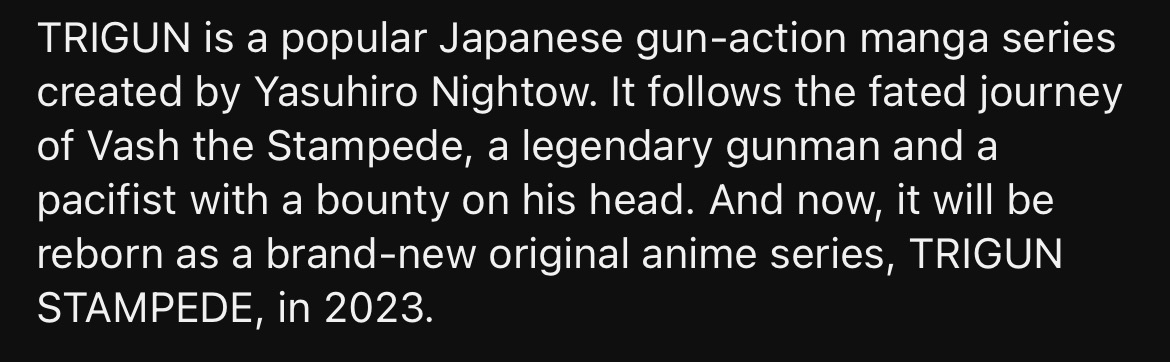 Poll: » Trigun Stampede Episode 12 Discussion ( 1 2 3 4 5 )Stark700 - Mar 25, 2023 |