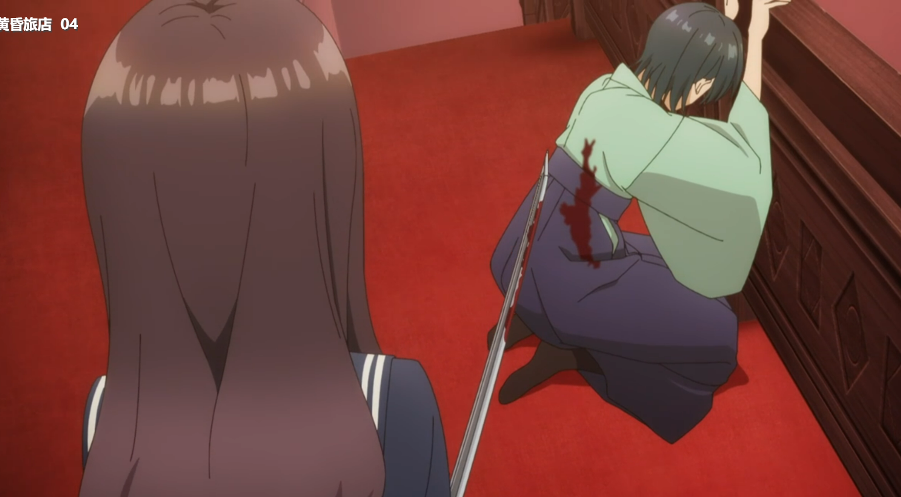But the real major question I have regarding events toward the very end of the episode, is what exactly happens to Kiyoe now? She "died" in the hotel, but she's alive back on Earth, right? Presumably she's just unconscious, either after fainting, being knocked out with a concussion, comatose, etc. It isn't her physical body back in the world (our world) which actually died, but her soul/spirit or mental projection of her consciousness in this place. So will she just eventually wake up in her real physical body back at home or in a hospital, without the hotel any longer playing a role in her salvation and helping her fight through, like a dream that just ended?