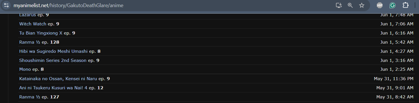 | @Luffy_15 Ah OK, that makes sense, sorry. I ended up changing out "Ani ni Tsukeru Kusuri wa Nai! 4" for "Ranma ½ OVA". Updated the end date as well. Thanks. |