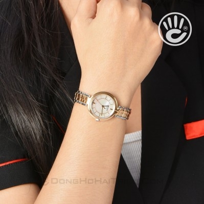 ● Mặt số được thiết kế mềm mại với dạng tròn truyền thống, bên ngoài được bảo vệ chắc chắn và giữ cân đối nhờ vào khung niềng kim loại với tông vàng hồng nữ tính.