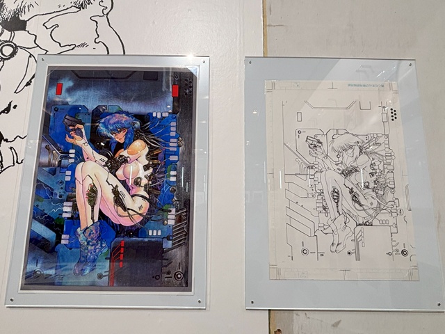 The original artwork exhibition by Masamune Shirow looked like this. Usually, at original artwork exhibitions, the T-shirts sell out starting with the larger sizes (like L or LL), but this time, the S and M sizes sold out first. The designs that were popular sold out in all sizes, so even if you had asked me to get one for you, I probably wouldn't have been able to. If they do a post-event online sale, I'd consider it again. But I hear they're also holding an anime exhibition in Tokyo, so I'm curious about that too.