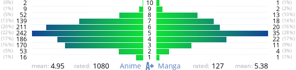 I'm an anime enthusiast who enjoys a wide range of genres. I particularly enjoy drama, romance, thriller, comedy, and slice-of-life. On the other hand, I dislike most ecchi/harem and long running shounen shows due to how incredibly predictable they usually are, although there are a few notable exceptions. I also read manga, visual novels and light novels, but not nearly as much as I watch anime. Feel free to make any anime/manga/VN/LN recommendations that you think I will be able to enjoy.