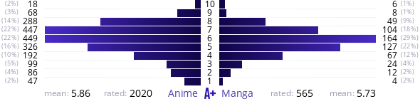 My initial thoughts about anime before watching Evangelion: After Eva: But finally I realized that "Anime is great. It's just the fans that suck." Hello and welcome to my profile! I’ve been an anime watcher for quite a long time, starting with cable TV as a child back in the late ’90s and being a regular here since 2012. As a diehard shounen fan, I try to keep an open mind about others’ tastes in anime (even though the medium is overflowing with overhyped mediocrity and low-quality junk these days). My goal is simply to find enjoyment in everything I watch, whether through an interesting story, well-rounded characters, believable drama, or sheer comedic value. I’m a recurring participant in the yearly anime-watching and manga-reading challenges. My ultimate ambition is to complete 10,000 series before I kick the bucket. In the meanwhile, together with my long-time dear friend Asztal, we’ve also been tackling the site’s ever-changing list of the top 100 worst anime. ⌞Anime Milestones⌝ 1st & 100th anime: It was so long, looong ago that I really can't remember neither :( I think my first completed anime might have been either 80 Days Around the World With Willy Fog, or Nils no Fushigi na Tabi, but back then I didn't even know what the hell an anime was. My 100th came when hungarian A+/Animax was still a thing, but that was well before using MAL so I can't trace it back. 200th (2012-10-26): I totally forgot to pay attention for this one, so I messed up and, unfortunately watched a short movie, music video, special or OVA ((most probably Taimanin Asagi Special)) as my 200th... What a shame. 300th: (2013-01-06) Higashi no Eden This anime encouraged me to one day try breaking into the White House butt naked and with a gun. Maybe not the best influence, but gotta swing those Johnnies! 400th: (2013-09-30) Shingeki no Kyojin After watching it the first season has been one of my favourites for quite a long time. SnK definitely has an outstanding story and the mysteries behind it make every season more intriguing than the previous. And we finally reached the peak with S3 part 2! :') 500th: (2014-10-08) Durarara!! Interesting storyline, amazing characters. Maybe one of the most unique anime I've seen by that time. Should watch the sequels already. 600th: (2015-06-13) One Piece: Episode of Merry - Mou Hitori no Nakama no Monogatari Probably the best OP recap out there, well focused on the touching parts of Merry's journey, enhanced with more modern and detailed visuals. I still cri evrytiem :'( 666th: (2015-11-07) Tenkuu Danzai Skelter+Heaven This is one hell of an anime, deserves #666 on my list, but making it the worst anime of MAL is kind of "overrating". I think Tsui no sora for eg. was a much better example of a complete trainwreck but we have to feed the meme aye. Anyways, thanks for enduring this one with me Naru-chan and Asztal! It was an experience, least to say haha. 700th: (2016-01-27) Junketsu no Maria Maria indeed surprised me! Maybe this is the best and bravest criticism of Christianity and religious bigotry I've seen in anime so far, strange it didn't make more of an outrage back then. This, and the just as surprising historical accuracy made it really enjoyable for me - although they could have spared the Disney-like sugary ending. Maria definitely deserves more attention! 750th: (2016-04-03) Suzumiya Haruhi no Yuuutsu Friedrich Nietzsche was wrong about god... unfortunately. Haruhi was more enjoyable than I expected, but I won't join your shitty religion you fanboys! Now, here I come endlesseightendlesseightendlesseightendlesseight KYON-KUN F*CKING DENWA!!! please just end my suffering already... o∑(O_O)🔫o (Ah, took me a few years to complete the franchise after this point.) 800th: (2016-05-20) Toki wo Kakeru Shoujo A quite disappointing movie honestly, even more because I really started to like Hosoda's works, but this one was very cheaply made, messy and the main girl's character simply irritated me. I still can't understand why is this remembered as a classic, even if the original novel might deserve its fame. 900th: (2016-09-04) Fate/Zero 2nd Season An enjoyable and thought-provoking battle royale-esque anime. The second season is a little bit better than the first, and the whole /Zero is MUCH-MUCH-MUCH better than that abomination known as og Fate/stay night! In this, people really die when they are killed, what a twist! 1000th!! (2017-01-21): Kaze no Tani no Nausicaä Ah, the beginnings of Studio Ghibli!* Nausicaä is definitely a nice movie, representing the mentality of Miyazaki and co. and their following oeuvre. I'm totally satisfied having it as my 1000th completed anime. *(Yes, I know this one is technically not a Ghibli movie.) 1100th (2017-04-27): JoJo no Kimyou na Bouken (TV) "Furueru hodo kokoro moetsukiru hodo atsuku sono te kara hanate kodou karada minagiru yuuki de mayou naki kakugo ni 'Kassai' wo! ~Sono chi no sadame~ Jooooojo!" Oh, yes! I couldn't imagine 2 years ago that I will ever watch and - even more - love this f*cking testosterone storm. But thanks to Asztal-kun and Sakamoto (don't ask) I was converted, and now I can stand proud as a beginner JJBA fan. 1200th: (2018-08-05) Bokusatsu Tenshi Dokuro-chan 2 I've seen the first "season" of Dokuro-chan in the past with my dear sister Silica2001 (´ε` )♡ . Even though I wouldn't say we enjoyed it a lot, I thought this would be the perfect series to commemorate my 1200th finished anime, because it's one of the first that we've watched together when she was a newby - I'm such a great influence. 1300th: (2019-03-29) Yakusoku no Neverland The anime adaptation of Neverland has received high expectations ever since it was announced, thanks to the manga original's place in Shounen Jumps current lineup. Thankfully it really turned out as one of the best anime in 2019, and I also found it an intriguing and thought provoking mistery story. 1400th: (2019-11-08) Kono Subarashii Sekai ni Shukufuku wo! E