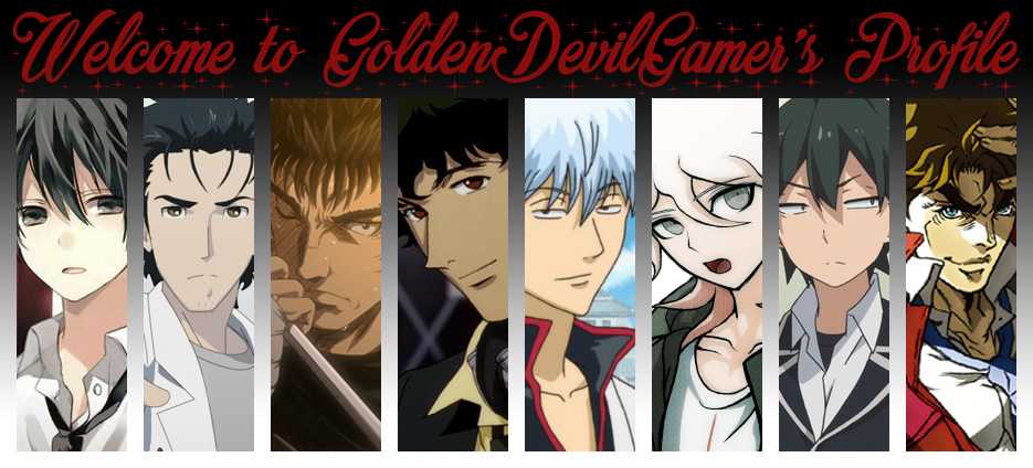 [NOTE: Outdated profile is outdated. I'll update this profile someday...] About Me I started watching anime right after making a MAL account. I guess I can thank Cowboy Bebop and Death Note for helping me get into anime. The manga of Death Note helped me get into manga, since I wanted to know how the manga compared to the anime. Since then, I've delved into both mediums pretty heavily. I'm currently a university student studying computer science. For most of the time, I'm either studying or pointlessly surfing the internet when I should be studying. On my spare time, I watch anime, read manga, or play video games. Actually no, I think I end up studying during my free times, and intentionally unintentionally prioritize my hobbies more. ¯\_(ツ)_/¯ When watching anime or reading manga, I follow these rules I made for myself: - I don't drop anything because I believe that I'm not seeing what the anime/manga is capable of if I drop it. No, I'm not a masochist. - I'll try my best to watch as much seasonal anime as I can, because I might stumble on something surprising. I swear I'm not a masochist. Feel free to recommend me any anime, manga, light novels, and/or video games! And if there's something you're interested in that I liked, feel free to talk to me about it. I'm pretty late with replies and friend request, so I apologize beforehand that I might take an eternity. Currently Doing - Watching most of the Winter 2019 anime S-tier: Mob Psycho 100 II, JoJo: Golden Wind, Kaguya-sama A-tier: Kaze ga Tsuyoku Fuiteiru, Promised Neverland, Dororo - Currently on a long-running Shounen binge, both manga and anime. The list is in my watch order and the crossed out ones are completed: Bleach -> Naruto -> Fairy Tail -> Dragon Ball -> One Piece -> Yu Yu Hakusho -> Katekyo Hitman Reborn! -> Magi -> Negima! -> Kenichi -> Inuyasha -> Toriko - Also on a Shoujo manga binge too, but I'm procrastinating on it. There's a lot in my list, but here's a list of the first set: Tonari no Kaibutsu-kun -> Fruits Basket -> Ouran Koukou Host Club -> Oresama Teacher -> Nana -> Ao Haru Ride -> Dengeki Daisy -> Suki tte Ii na yo -> Kimi ni Todoke -> Hirunaka no Ryuusei -> Akatsuki no Yona -> Last Game -> Taiyou no Ie - VNs I'm currently playing: 428: Shibuya Scramble | Steins;Gate: Linear Bounded Phenogram | Subarashiki Hibi | Code: Realize ~Future Blessings~ How I Rate 9.5-10 (Outstanding) – Nearly perfect in every way. From premise to execution, it manages to excel and ends up being unforgettable. 8.5-9.4 (Amazing) – Fantastic, even if minor flaws that prevents it from being perfect. It's still a must-watch. 7.5-8.4 (Great) – Very enjoyable, with very not many flaws. It's not as perfect as it could be, but it's still great in it's own way. 6.5-7.4 (Good) – Flawed, yet enjoyable. Still worth checking out, even if it's not the best of the bunch. 5.5-6.4 (Okay) – Above average as it has a large amount of flaws that push it's quality down, but it's still decent. 4.5-5.4 (Mediocre) – Strictly average as it has about the same amount of plus points as it has minus points. 3.5-4.4 (Bad) – Below average as it has more flaws than good points. Not worth any of your time unless you really want to. 2.5-3.4 (Terrible) – Lacking in every way to a point where it's disgusting. A small amount of plus points helps this from being atrocious. 1.5-2.4 (Horrible) – Almost the worst thing ever. Nearly everything it does is awful. Definitely something to avoid. 0.5-1.4 (Atrocious) – The epitome of cancer itself. This ain't it, chief. Favorites Anime Gintama | Cowboy Bebop | Steins;Gate | JoJo no Kimyou na Bouken: Diamond wa Kudakenai | Hunter x Hunter (2011) Manga & Light Novels Gintama | Kyou kara Ore wa!! | Utsuro no Hako to Zero no Maria | Berserk | Yahari Ore no Seishun Love Comedy wa Machigatteiru. Extra Stuff "Fake people have an image to maintain. Real people just don't care." - Hikigaya Hachiman "You yourself have to change first, or nothing will change for you." - Sakata Gintoki "How can you move forward if you keep regretting the past?" - Edward Elric "If there were a place lower than here, it would surely be hell." - Onodera Punpun Credits for anime and manga list layouts: Kiokuzoku Credits for the minimalist character art: SpellsEmp | ExLu | SykotixUK | Klikster | Assassins23 |