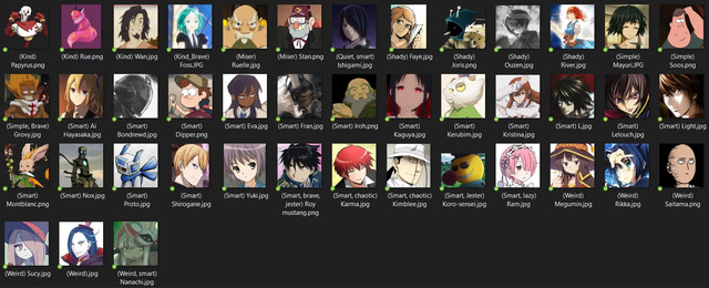 With some half-random categorisation. Not only from anime, actually. Also there are some characters (not many) that aren't actually the best, but i liked their design anyway. Will update this list to look better, buut probably a bit later.