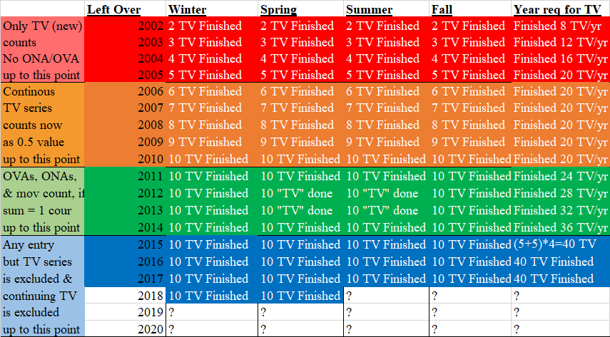 (Exceeded 50k character limit from MAL, so gonna use abbreviations. Google "anime <abbrev>" if you're not familiar) I might be recycled before I get through all of my PTW. ================================================= Shitflakes (my alt account) ratings: Shortcut to anime list ratings: https://myanimelist.net/animelist/Shitflakes MAL Profile (includes extended favorites): https://myanimelist.net/profile/Shitflakes MALGraph for the account I use to rate: http://graph.anime.plus/Shitflakes/profile Gifs Ed Member Ed Standard Ed Milk Ed Maid Ed Swimsuit Ed Bunny Girl Ed HS DxD Ed Other Ed (All credit goes to the card makers of the club) Ratings assigned: Ratings are based on enjoyment as I believe it goes hand in hand with quality (bound to be a few exceptions). Anything < 10 mn in length time is not rated. If there are multiple entries, ratings are determined on WEIGHTED average by episodes. If Entry 1 = 26 eps and Entry 2 = 13 eps, then former entry is weighted more. Movie duration is split into how many 20 min eps it can fit i.e. 90 min = 4.5 eps. Prequel/Sequel OVAs are also factored by weighted ratings. Side story TV series and OVAs only count IF it's like a TV series (ie Toaru Kagaku Railgun). To determine the weighted average for a movie, its length is divided by 20 min even though most eps are > 20 min, but that includes OP & ED. The avg sum of individual entry ratings are displayed. Rating value is subject to change anytime if I feel the scores aren’t justified enough, so rewatches aren’t necessary. Before I determine a final score, I compare that series with the rest of the group and modify if necessary. Approaches to rankings: --There are inconsistencies in MAL entries (I know why) where a franchise has multiples of entries vs another franchise that is long running but with only one entry w/ 100s of episodes. Since that is the case, I GENERALLY combine the entries together (whether TV series, movies, OVAs) in rankings, which prevents the list from being out of control. --COMPLETED franchises are ranked. Completed entries of a franchise are rated but it won’t have an assigned ranking number until I go through the entire franchise. Quality of the anime can increase/decrease in the ending, so shows in progress shouldn't be rated and ranked until it's finished. Exceptions to this rule will apply to long running shows (100+ episodes). --COMBINING Prequels/Sequels vs SEPARATING __1) If MAL creates separate entries for multiple seasons of that franchise, they are only considered separate if ___A) OVER 2.5 years of time has elapsed between exact end of the episode of the prequel and the exact beginning of the episode of the sequel. (ie Digimon Adventures 1 vs 2) [EXCEPTION: at least 1 main character is in both seasons DESPITE major time elapsing (i.e. JoJo Part 3 and Part 4 with Joseph/Jotaro)] -OR- ___B) Alternative TV series or alternative movie versions that contain multiple episodes are treated separately. (ie Ghost in the Shell movie vs SAC vs Arise). Side story TV series are treated together with the main/parent story of the franchise (ie Toaru Kagaku no Railgun) [EXCEPTION: alternative TV versions created by SAME studio will be combined (i.e. FullMetal Alchemist and Brotherhood)] _____To make this even more complex/weird, only the above applies to TV shows. If a single movie is made by different studio from the TV series (ie Clannad), that movie will be factored and averaged with the TV series and be considered as one whole. Same applies with OVAs/ONAs/Specials that are > 10 minutes. If I don’t do this, then there will be even more clutter of the same franchise. OR- __2) If MAL combines multiple seasons/arcs as one entry, they remain as a single entry in the ranking even if >2 years have elapsed between the exact end of last arc and exact beginning of the next arc (ie Tengen Toppa Guerren Lagann). __3) OVAs and movies that are affiliated, in name, of the TV series are by default considered together as one in rankings irregardless of time elapsed unless exceptions above apply. All specials/OVAs/movies are factored into franchise rating if > 10 minutes. Favorites I have revised what I view as favorites since Jan 5, 2020. Initially it was weighted franchise, then it was peak + volume, and now it's higher weighted average by what I researched as "canon" (since I haven't read original source yet). In general, side stories often are not recorded as canon and thus not factored into calculation (this differs from franchise ranking in which it incorporates every franchise related entry > 10 minutes (non recaps) and recaps > 60 minutes. If the synopsis for side story CLEARLY mentions that it was adapting a chapter from the original source, then it will be included. All sequels and prequels are included. Remake movies will become canon OVER series adaptation if they make a subsequent sequel/prequel movie that isn't a remake All Manga favorites (other than Berserk) are actually anime favorites. Between the anime and manga favorites, it ranks top 19 canon weighted franchise favorites. Each 1000 minutes of shows (I used minutes per episode from MAL to calculate) adds to 0.01 of their weighted average score to factor in volume as I appreciate it having more quality episodes. In GENERAL, the anime is top 1-10, manga is 11-19. The exceptions are if it's original only, then I swap the lowest ranked section of anime with the highest ranked section of "manga" OR if one anime adaptation adapted more than one original source for that entry. Likewise, the Shitflakes account is top 20-39 franchises, but there are much more swapping between anime and manga thanks to the exceptions. Characters: After experiencing unexpected headaches at trying to keep up with rotating 4 characters every week at exactly the same time, I'm going to instead limit to 1 rotational slot. Since 6 characters are soldified and by chance all happen to be male, this account will be used as ranking for male characters with 