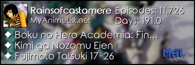 If you wanna talk about anime, have/want recommendations, or just whatever shoot me a message and I'll get back to you whenever.