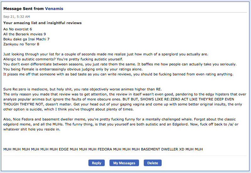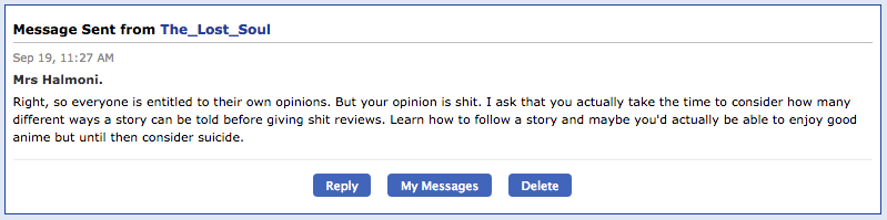 Hey fam, my reviews have been deleted cause apparently we're not allowed to fucking edit reviews or write a review unless we've watched the entire anime. What a fucking joke, amirite? lmao